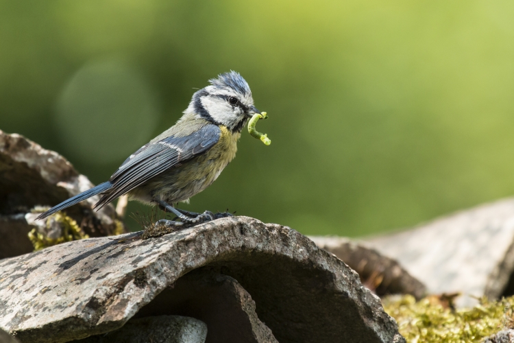 Mésange bleue et ver